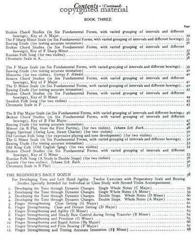 Whole book of open string exercises with a variety of bowing and rhythm techniques to establish the correct position of the body and tone-production before placing the fingers.