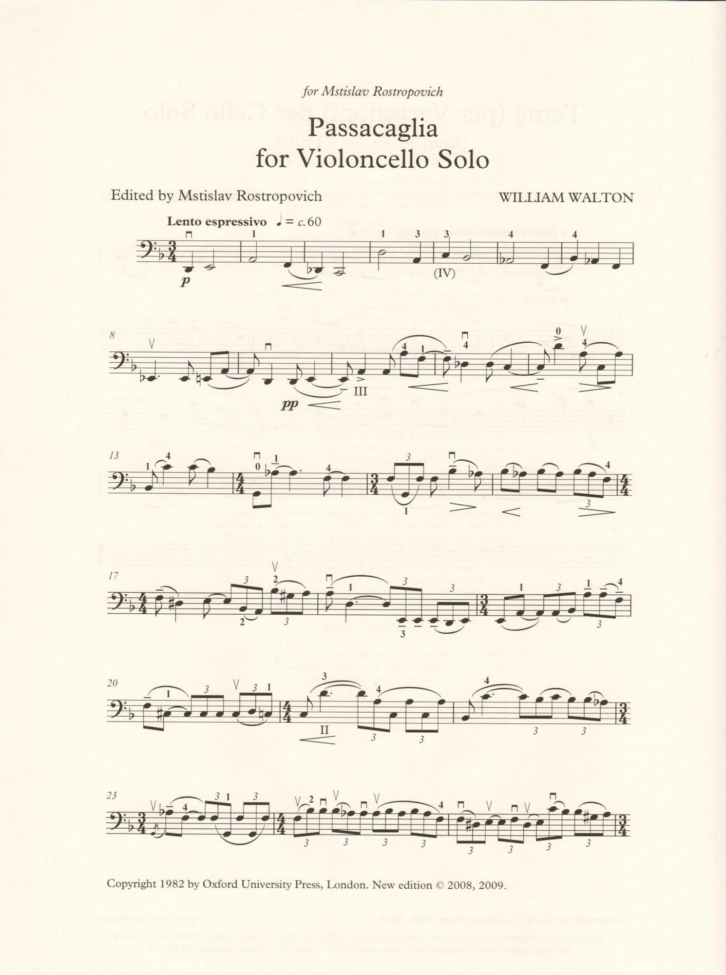 Walton, William - Two Pieces for Solo Cello (Tema per Variazioni & Passacaglia) - edited by Hugh MacDonald - Oxford University Press